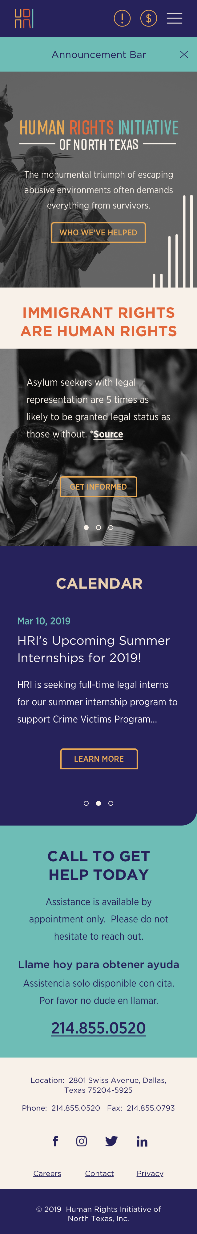 With user pain-points from a UX audit and UX/UI best practices, I reshaped HRI’s digital home base to create an accessible, content and navigation-friendly site. By establishing responsive design patterns and inclusive elements I highlighted online support and resources for multi-language use. Explore the new site for Human Rights Initiative.